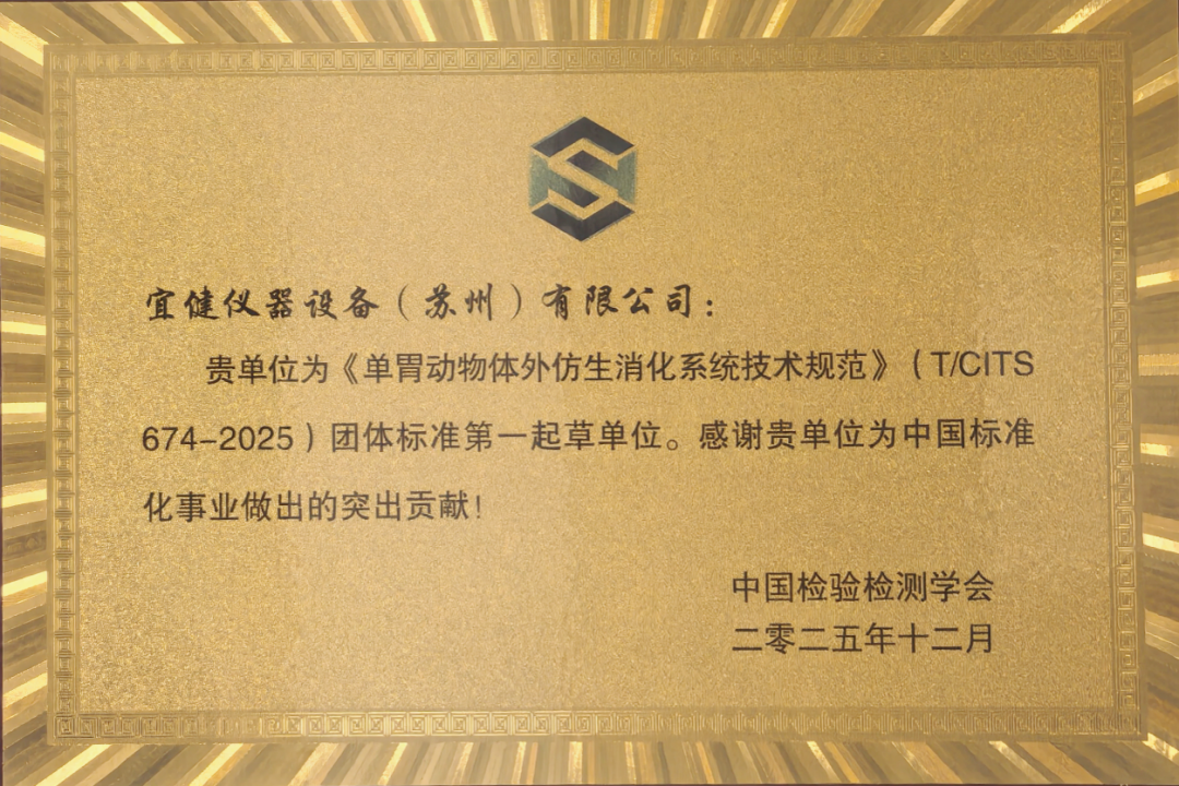 2025年12月,由中国检验检测学会牵头,宜健公司作为第一起草单位,联合北京天翔飞域科技有限公司、浙江工商大学、福建农林大学食品科学学院、华中农业大学、山东农业大学、上海城建职业学院等多家单位共同制定的《单胃动物体外仿生消化系统技术规范》团体标准(T/CITS674—2025)正式发布!这一标准的落地,不仅填补了国内单胃动物体外仿生消化领域的标准空白,更是各参编单位在推动该技术规范化、标准化应用,助力相关产业降本增效方面交出的高质量答卷。